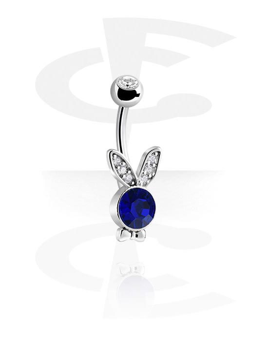 Piercing pour le nombril (acier chirurgical, argent, finition brillante) avec motif lapin et pierres en cristal