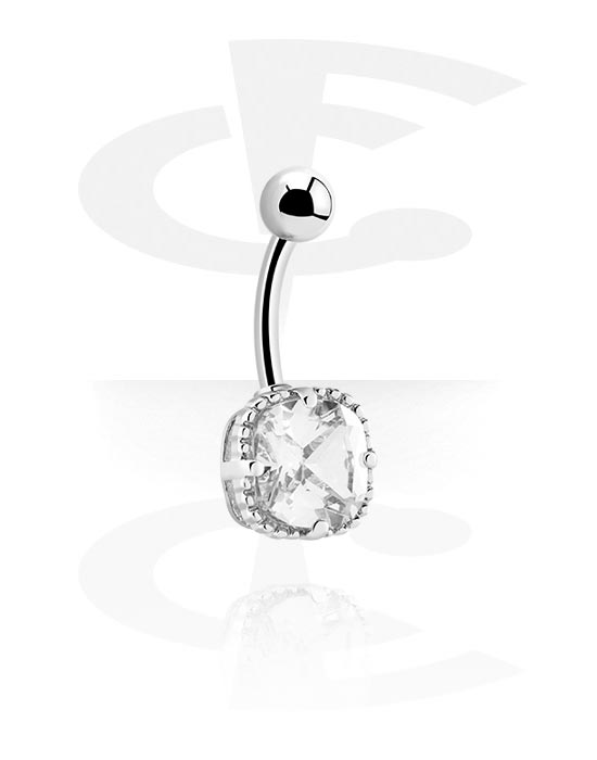 Piercing pour le nombril (acier chirurgical, argent, finition brillante) avec pierres en cristal
