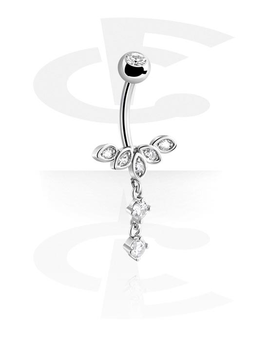 Piercing pour le nombril (acier chirurgical, argent, finition brillante) avec pierres en cristal