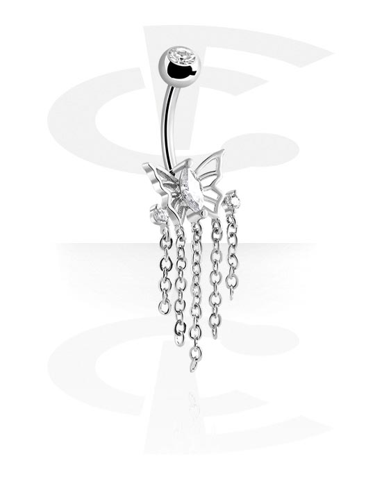 Piercing pour le nombril (acier chirurgical, argent, finition brillante) avec motif papillon et collier