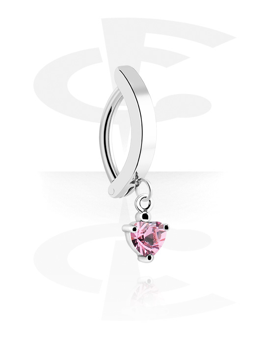Clicker pour le nombril (acier chirurgical, argent, finition brillante) avec pendentif coeur et pierre en crystal