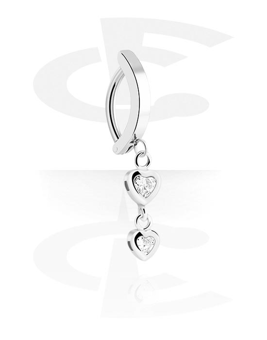 Clicker pour le nombril (acier chirurgical, argent, finition brillante) avec pendentif coeur et pierres en cristal