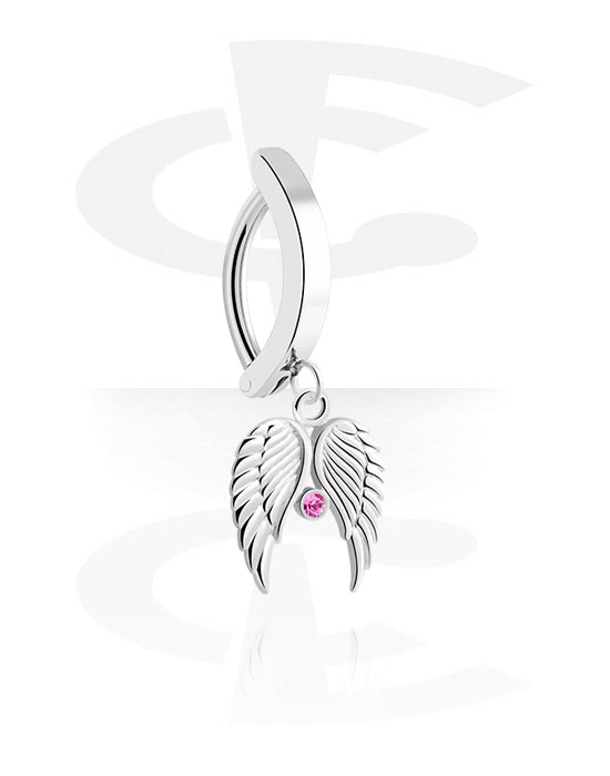 Clicker pour le nombril (acier chirurgical, argent, finition brillante) avec pendentif aile et pierres en cristal