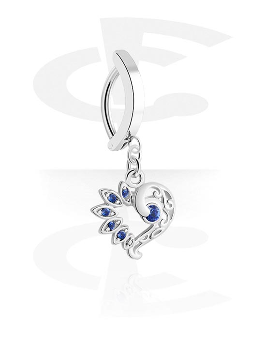 Clicker pour le nombril (acier chirurgical, argent, finition brillante) avec pendentif coeur et pierres en cristal