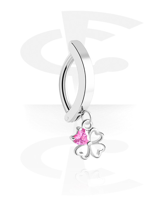 Clicker pour le nombril (acier chirurgical, argent, finition brillante) avec pendentif trèfle et pierre en crystal