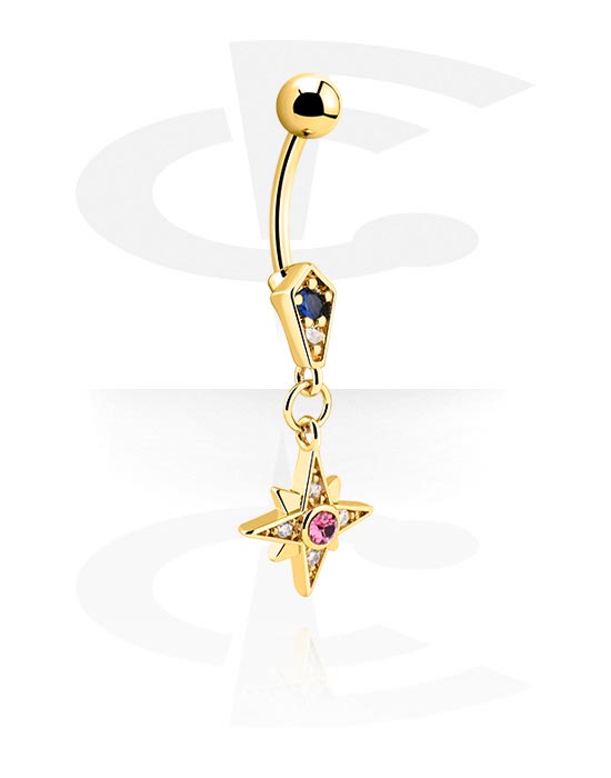 Piercing pour le nombril (acier chirurgical, or, finition brillante) avec pierres en cristal