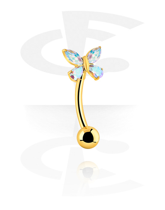 Piercing pour le nombril (titane, or, finition brillante) avec motif papillon et pierres en cristal