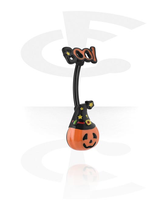 Piercing pour le nombril (acier chirurgical, noir, finition brillante) avec motif halloween "citrouille"