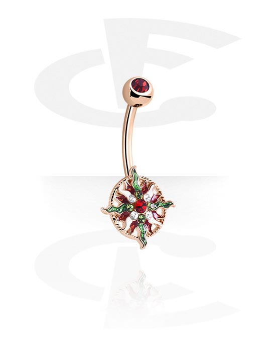 Anneau pour le nombril (acier chirurgical, or rosé, finition brillante) avec pierres en cristal
