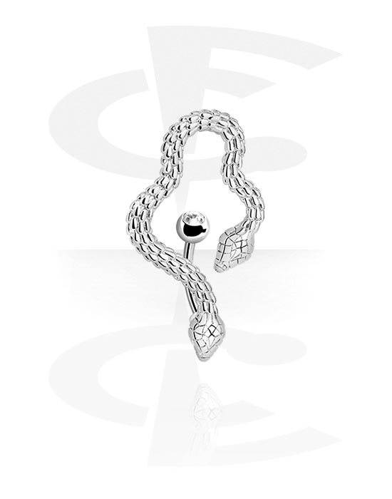 Piercing pour le nombril (acier chirurgical, argent, finition brillante) avec motif serpent et pierre en crystal
