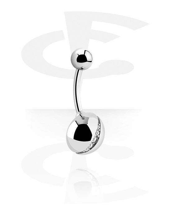 Piercing pour le nombril (acier chirurgical, argent, finition brillante) avec pierres en cristal