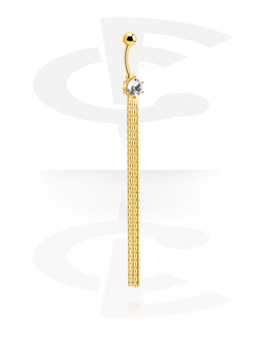 Piercing pour le nombril (acier chirurgical, or, finition brillante) avec pierre en crystal et collier
