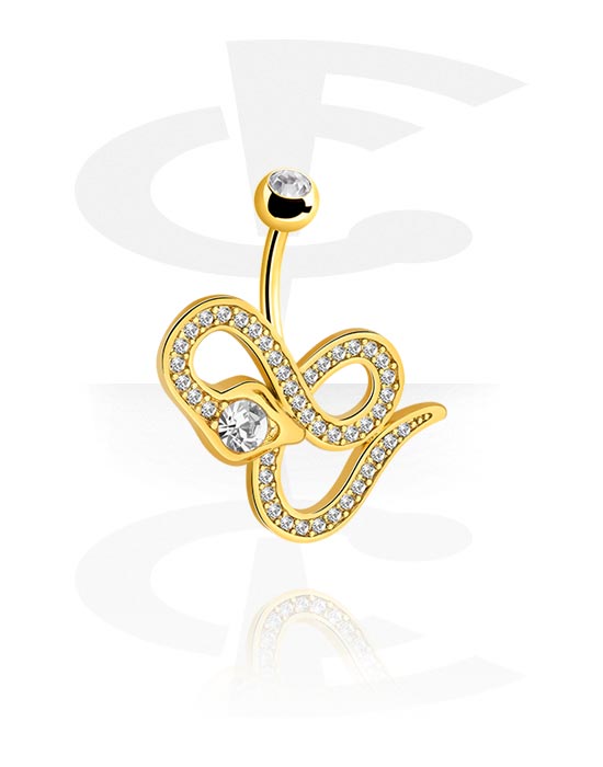 Piercing pour le nombril (acier chirurgical, or, finition brillante) avec motif serpent et pierres en cristal