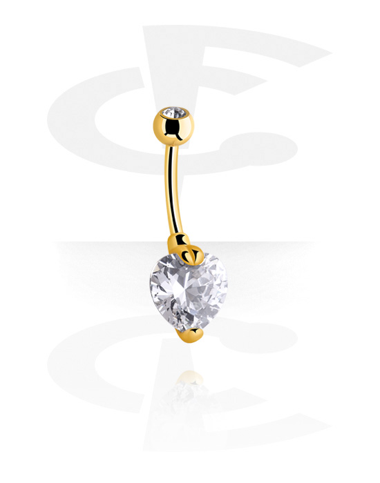Piercing pour le nombril (acier chirurgical, or, finition brillante) avec pierre en crystal