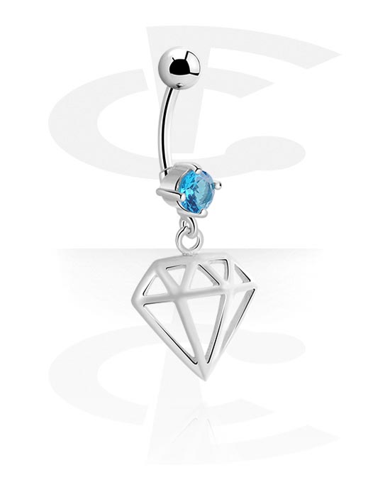 Piercing pour le nombril (acier chirurgical, argent, finition brillante) avec accessoire diamant et pierre en crystal