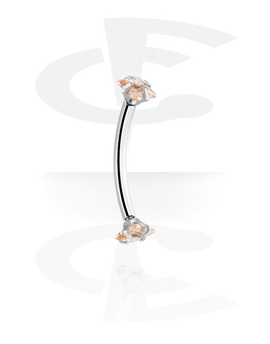 Internally Threaded Banana (surgical steel, silver, shiny finish) avec pierres en cristal