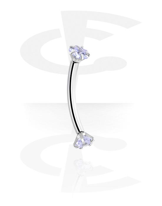 Internally Threaded Banana (surgical steel, silver, shiny finish) avec pierres en cristal