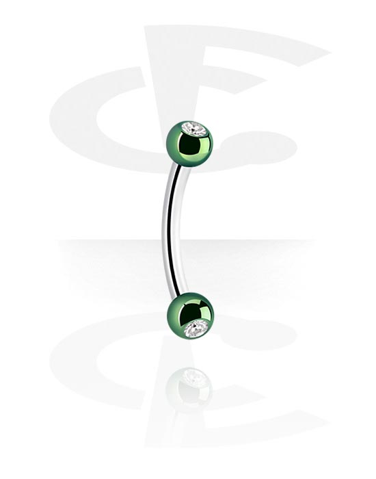 Banane (acier chirurgical, argent, finition brillante) avec boules anodisées et pierres en cristal
