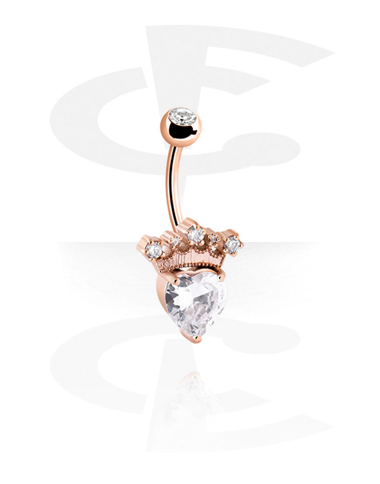 Anneau pour le nombril (acier chirurgical, or rosé, finition brillante) avec motif couronne et pierres en cristal