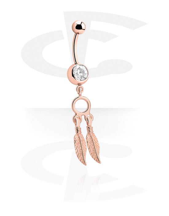 Piercing pour le nombril (acier chirurgical, argent, finition brillante) avec pendentif plume et pierre en crystal