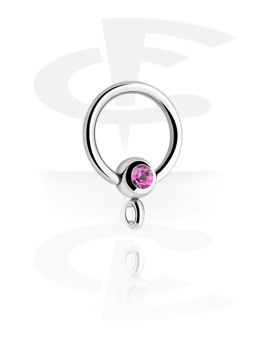 Ball closure ring (acier chirurgical, argent, finition brillante) avec pierre en crystal et anneau pour accessoires