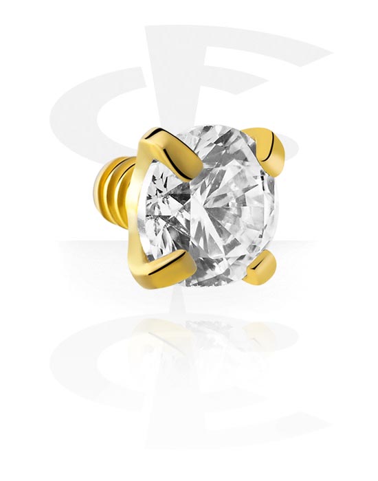 Accessoire pour barre à filetage interne (acier chirurgical, or, finition brillante) avec pierre en crystal