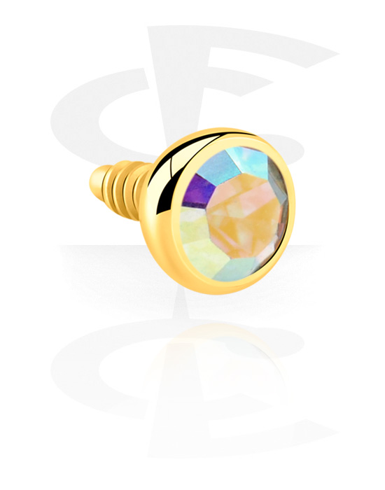 Accessoire pour barre à filetage interne de 1.2 mm acier chirurgical, or, finition brillante) avec pierre en crystal