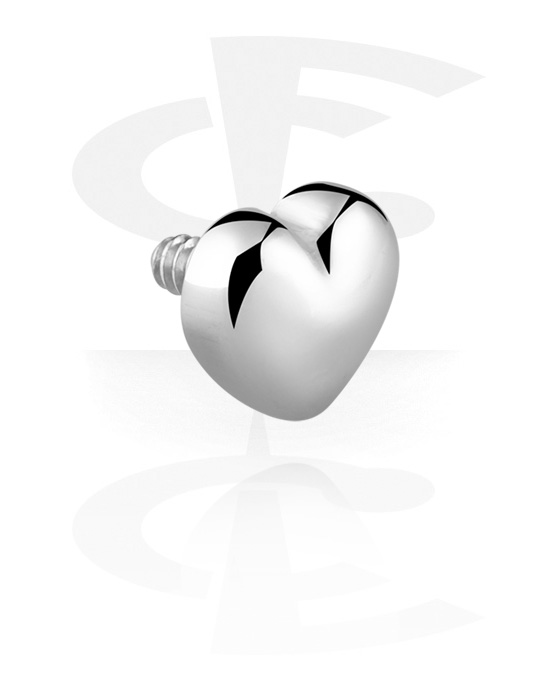 Accessoire pour barre à filetage interne de 1.2 mm (acier chirurgical, argent, finition brillante) avec coeur incrusté