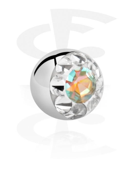 Boule pour barre à filetage de 1.6 mm (acier chirurgical, argent, finition brillante) avec pierre en crystal