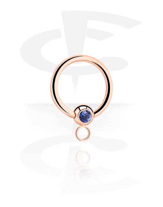 Ball closure ring (acier chirurgical, or rosé, finition brillante) avec pierre en crystal et anneau pour accessoires