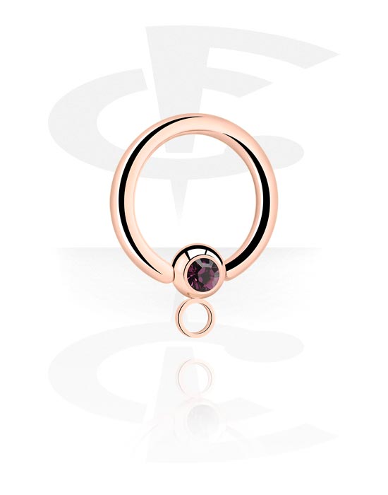 Ball closure ring (acier chirurgical, or rosé, finition brillante) avec pierre en crystal et anneau pour accessoires