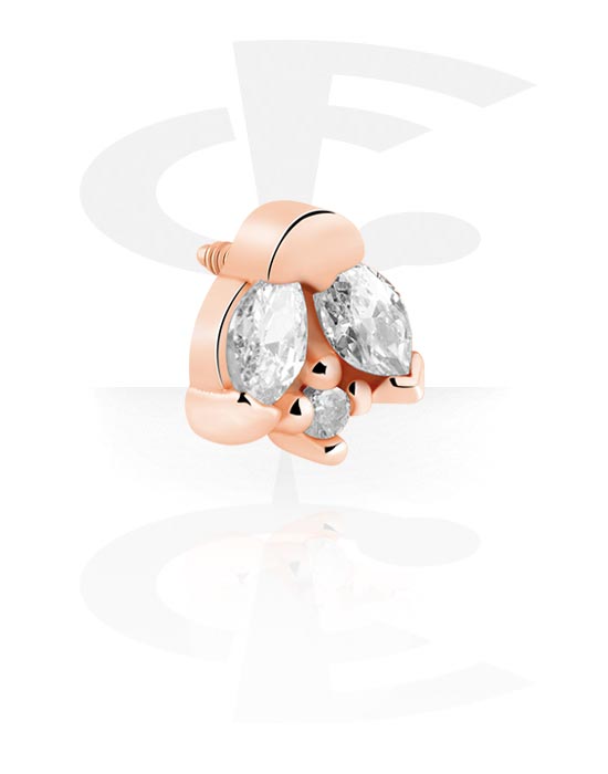 Accessoire pour barre à filetage interne de 1.2 mm (acier chirurgical, or rosé, finition brillante) avec pierres en cristal