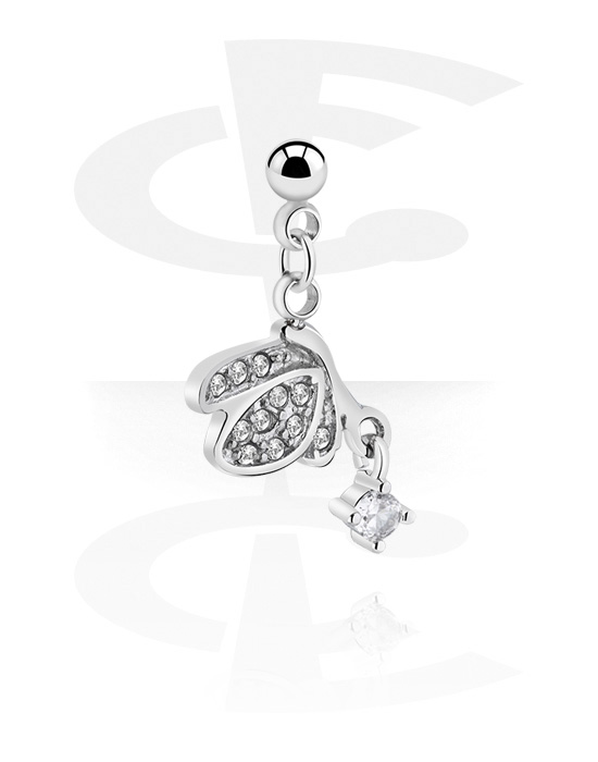 Accessoire pour barre à filetage de 1.2 mm (acier chirurgical, argent, finition brillante) avec motif papillon et pierres en cristal