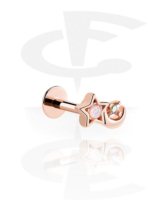 Labret (surgical steel, rose gold, shiny finish) avec étoile en cristal et motif quartier de lune
