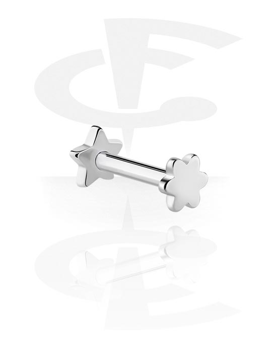 Flatback Internally Threaded Labret (surgical steel, silver, shiny finish) avec accessoire fleur