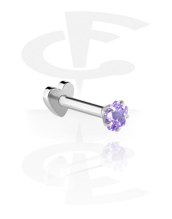 Flatback Internally Threaded Labret (surgical steel, silver, shiny finish) avec étoile en cristal