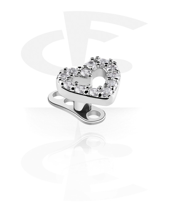 Implant microdermal (titane, finition brillante) avec accessoire coeur et pierres en cristal