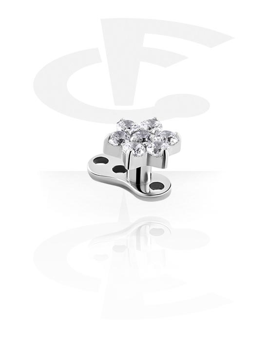 Implant microdermal (titane, finition brillante) avec accessoire fleur et pierres en cristal