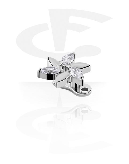 Implant microdermal (titane, finition brillante) avec accessoire fleur et pierres en cristal