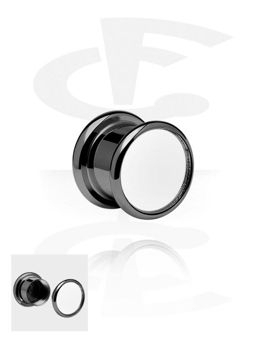 Plug double flared (acier chirurgical, noir, finition brillante) avec rangement secret et miroir frontal