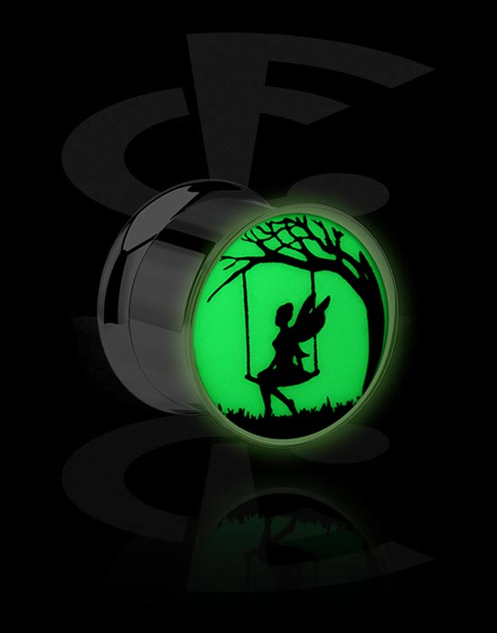 Tunnel double flared "Glow in the dark" (acier chirurgical, argent, finition brillante) avec motif féerique