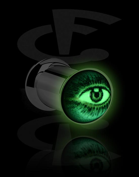 Plug double flared "Glow in the dark" (acier chirurgical, argent, finition brillante) avec motif oeil