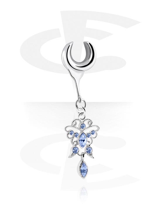 Demi tunnel (acier chirurgical, argent, finition brillante) avec pendentif et pierres en cristal