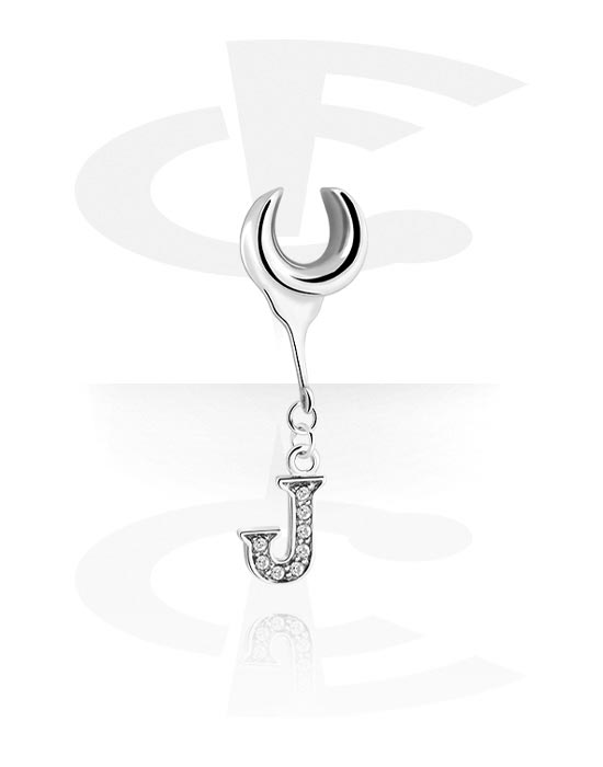 Demi tunnel (acier, argent, finition brillante) avec pendentif lettre "J"