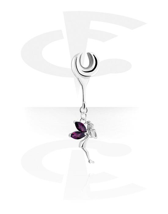 Demi tunnel (acier, argent, finition brillante) avec pendentif fée et pierre en crystal