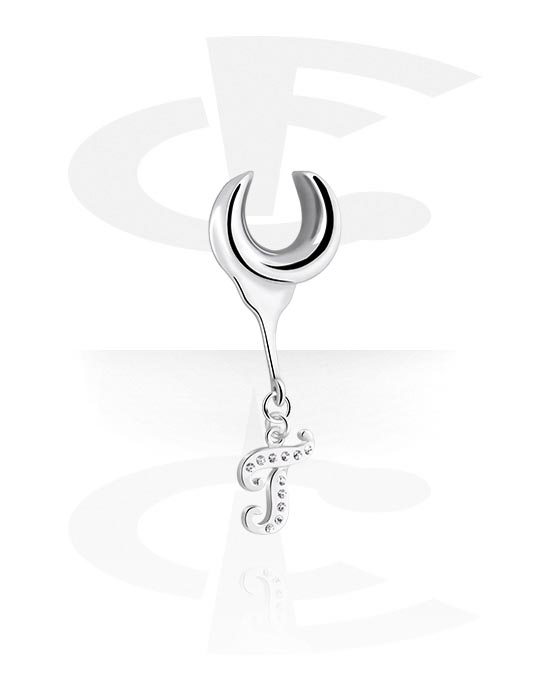 Demi tunnel (acier, argent, finition brillante) avec pendentif lettre "T"