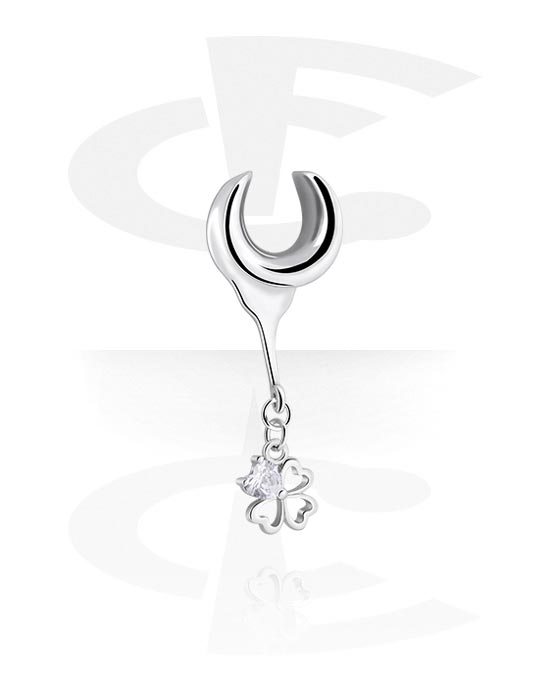 Demi tunnel (acier, argent, finition brillante) avec pendentif trèfle et pierre en crystal