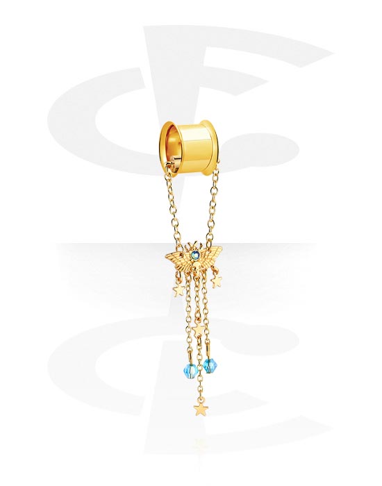 Tunnel double flared (acier chirurgical, or) avec accessoire papillon et pierres en cristal