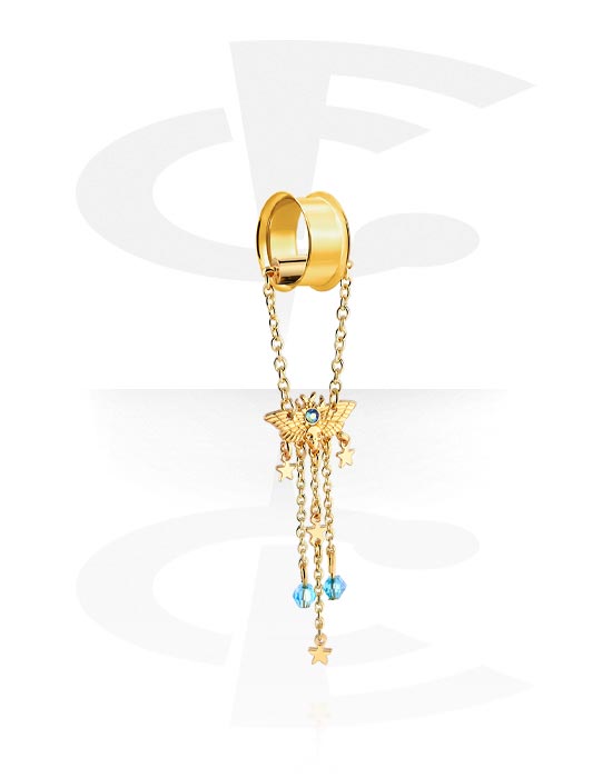Tunnel double flared (acier chirurgical, or) avec accessoire papillon et pierres en cristal