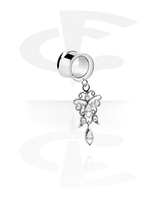 Tunnel double flared (acier chirurgical, argent) avec accessoire avec pierres en crystal